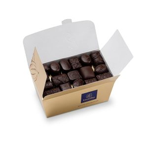 În final, pralinele sunt ambalate în cutii elegante, care protejează produsul și completează experiența. Ambalajul este o parte integrantă a produsului, reflectând rafinamentul și atenția la detalii.