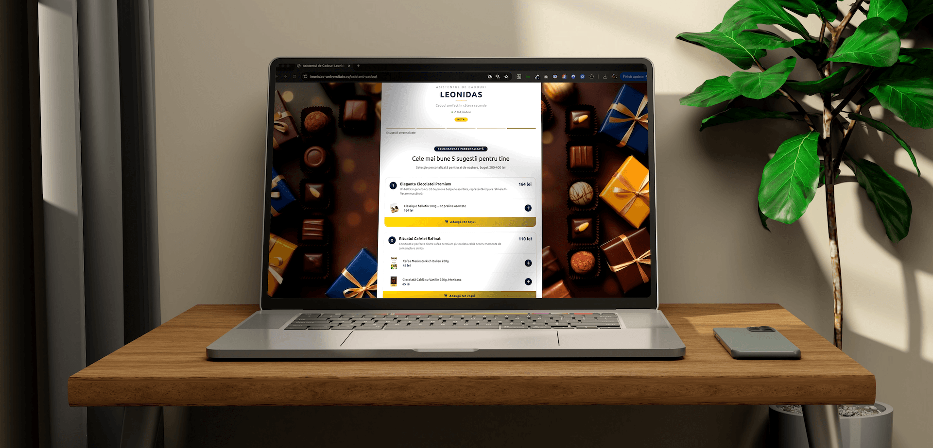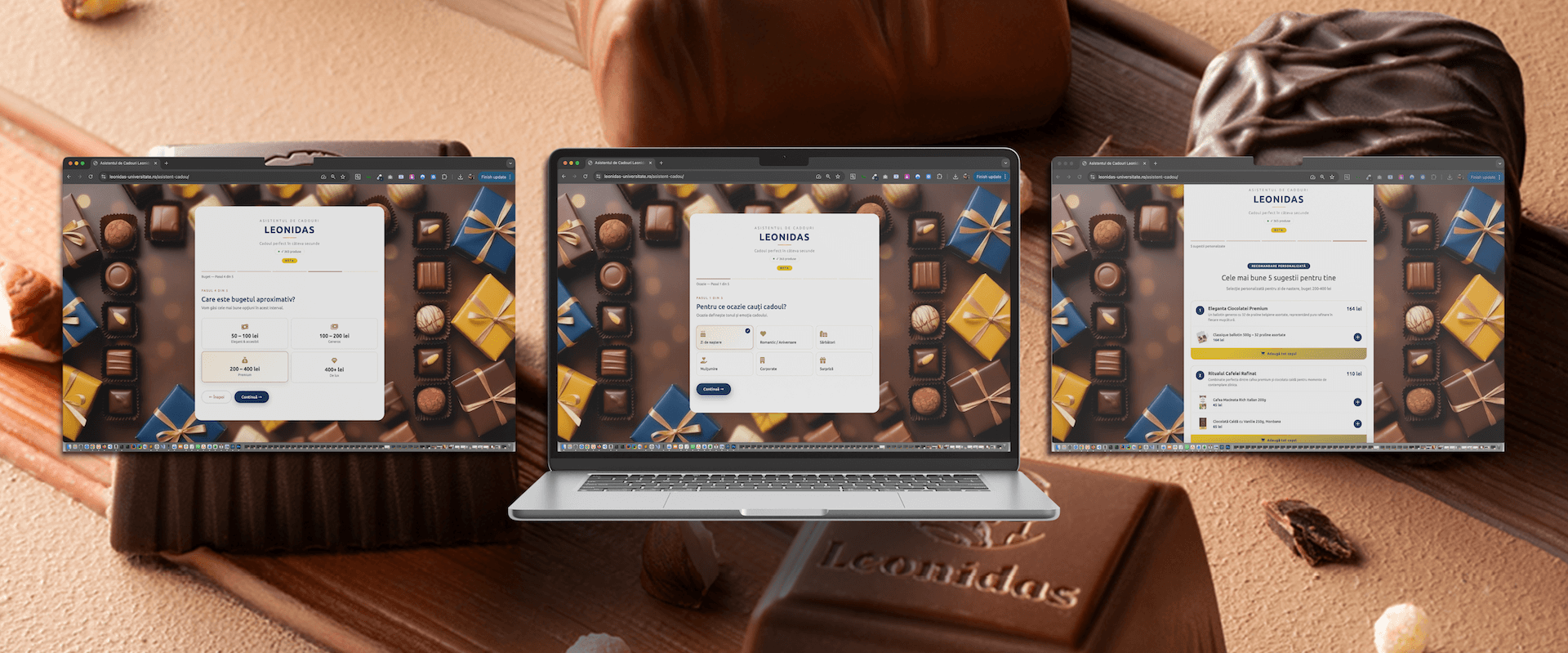 Pornind de la această realitate, Leonidas a introdus pe platforma sa online un instrument care își propune să simplifice procesul de alegere. Noul Asistent de Cadouri este gândit ca un ghid digital care ajută clientul să ajungă mai repede la produsele potrivite, fără să fie nevoit să răsfoiască la întâmplare zeci de pagini și categorii. Ideea din spatele lui este simplă: în loc să cauți singur prin tot magazinul, răspunzi la câteva întrebări, iar sistemul îți propune variante relevante.